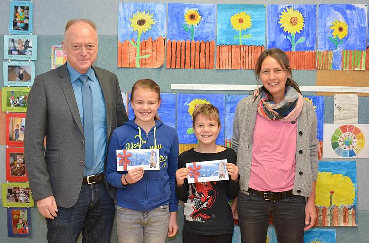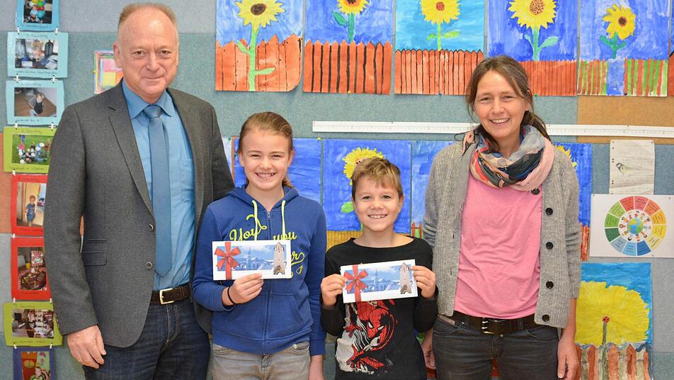 Gemeinsam mit den beiden Gewinnern freute sich auch Helmut Blank, der im Namen der Stadt Münnerstadt jeweils eine "MünnerCard" im Wert von 25 Euro überreichte. "Uns liegt die Schule sehr am Herzen. Hier wird sehr gute Arbeit geleistet wie auch die Mathematikolympiade wieder gezeigt hat", erklärte der Bürgermeister.