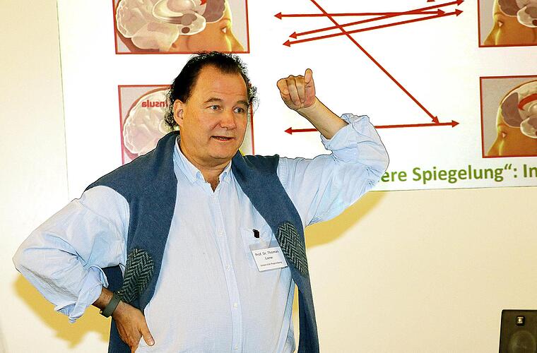 Dr. Thomas Loew, Professor für Psychosomatische Medizin und Psychotherapie an der Universität Regensburg und Chefarzt der dortigen psychosomatischen Abteilung, ist ein Freund klarer Worte. Beim Fortbildungstag für Erzieherinnen und Kinderpflegerinnen (einige wenige Herren waren aber auch dabei) im Berufsbildungszentrum Münnerstadt (BBZ) hielt er das Impulsreferat zum Thema "Erziehung in der Polarität zwischen Druck und Gelassenheit" und leitete auch einen der Workshops.