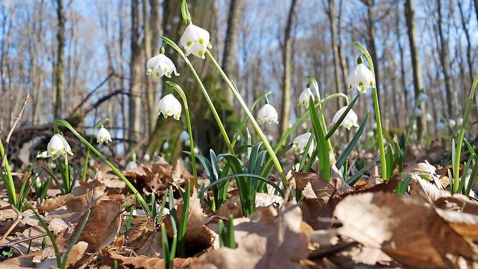 Im Bereich von Wurm- und Possenberg oberhalb der Münnerstädter Talkirche bilden die unter Naturschutz stehenden Märzenbecher wieder ganze Blumenteppiche.