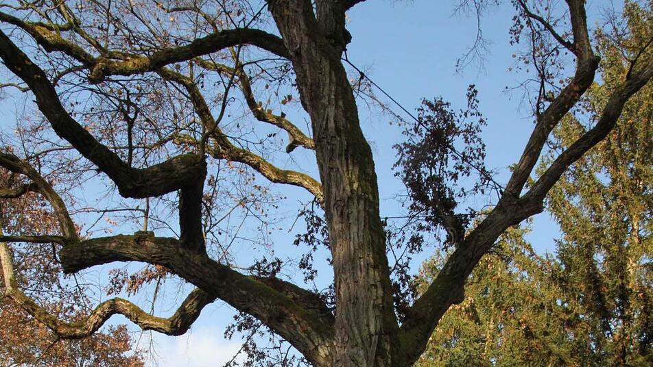 Bei einem Sommersturm ist die Krone dann noch durch eine umstürzende Linde beschädigt worden. Die Kosten für die Baumpflege übernimmt in diesem Fall das Landratsamt, obgleich es sich bei der Linde nicht um ein Naturdenkmal handelt, betont Roland Lenhart von der Unteren Naturschutzbehörde. Die Bedeutung des Baumes rechtfertige aber die Kostenübernahme. Außerdem ist man froh, dass die Stadt sehr kooperativ sei und solche alten Bäume auch erhalten will. Da greift man dann gerne auch einmal finanziell unter die Arme.