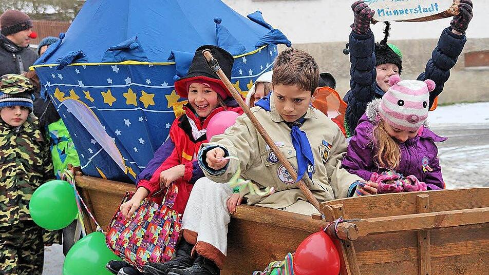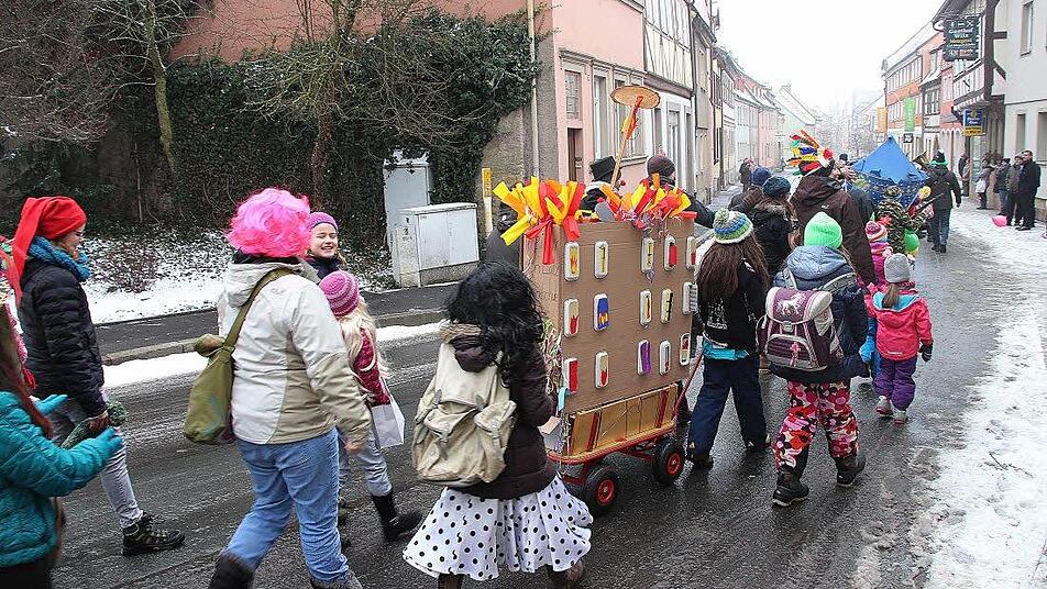 Viele Kinder waren als Cowboy, Prinzessin, Pirat, Feuerwehrmann, Schmetterling verkleidet. Sie und die Erwachsenen versammelten sich am Oberen Tor und der bunte Zug marschierte dann mit Musikbegleitung zum Anger, wo es anschließend gut zwei Stunden lang ein unterhaltsames Faschingstreiben gab.