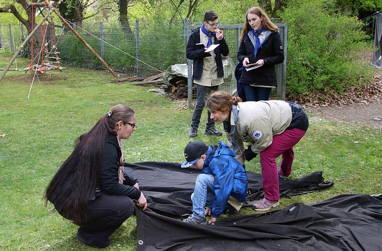 Eine Jurte zusammenzubauen, ist gar nicht so einfach. Die Jungen und Mädels mussten, um den Stempel in ihr Heft zu bekommen, die Knoten üben, die man dazu braucht. Stammesvorsitzende Yvonne Sturmat führte es ihnen erst einmal vor, dann war es nicht der ganz schwer.