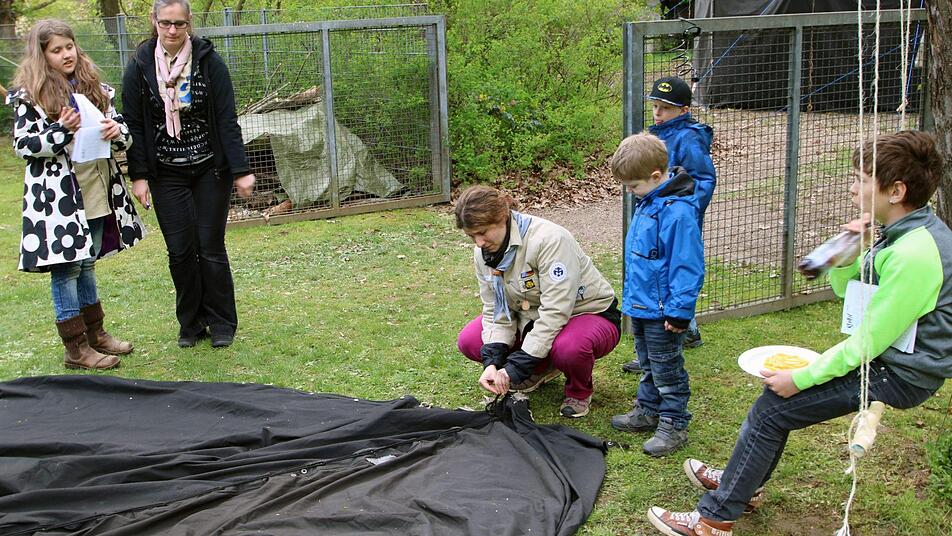 Wenige Meter weiter mussten die Kinder bei Rosina Eckert und ihrem Mann gezeichnete Tierspuren, Früchte und Blätter erraten. Sie waren zwar keine Pfadfinder, "aber wir sind jahrzehntelange Pfadfinder-Eltern", erklärt Eckert. Sie verweist stolz darauf, dass die Stammesvorsitzende ihre Tochter ist.