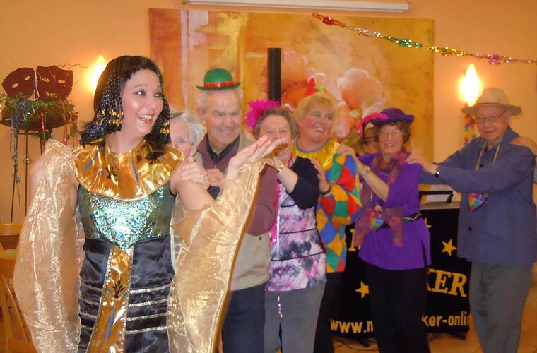 Das Team um die Bereichsleiterin von St. Michael, Karina Dietz, hatte sich fantasievoll kostümiert und forderte die Senioren zum Tanzen auf.