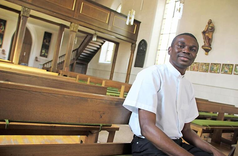 Haben Sie Heimweh nach ihrer Heimat?Ja, ich vermisse Nigeria und meine Familie schon. Das ist normal. In Deutschland ist es aber so schön für mich; das hilft mir. Die Familie, bei der ich in Poppenlauer wohne, ist sehr nett, alle sind so nett; ich muss ihnen dafür danken. Sie wollen alle, dass ich mich wie daheim fühle. Ich bin auch nicht alleine hier. Ich bin mit einem Mitbruder nach Würzburg gekommen. Er ist jetzt in Obertheres. Mit meiner Familie in Nigeria und dem Bischof telefoniere ich.
