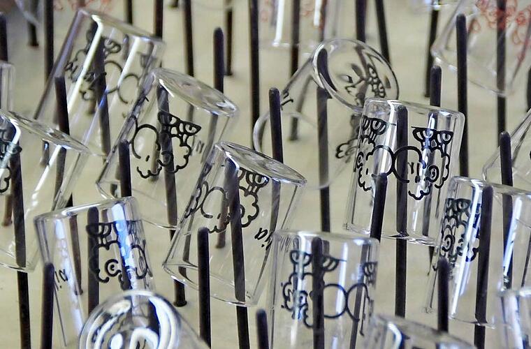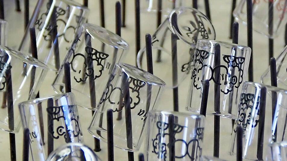 Irgendwann - das Jahr weiß er gar nicht mehr - kam jemand im Betrieb auf die Idee, aus Restglas bedruckte Schnapsgläschen zu fertigen. "Es war als Jux gedacht", erzählt Neumayr und damals auch nur für die Mitarbeiter. 15 bis 20 Jahre dürfte das her sein, schätzt Karin Hein. Doch als das Glas bei den ersten Polterabenden auftauchte, sprach sich herum, dass diese nette kleine Idee aus der Münnerstädter Glaswarenfabrik stammte.