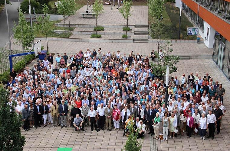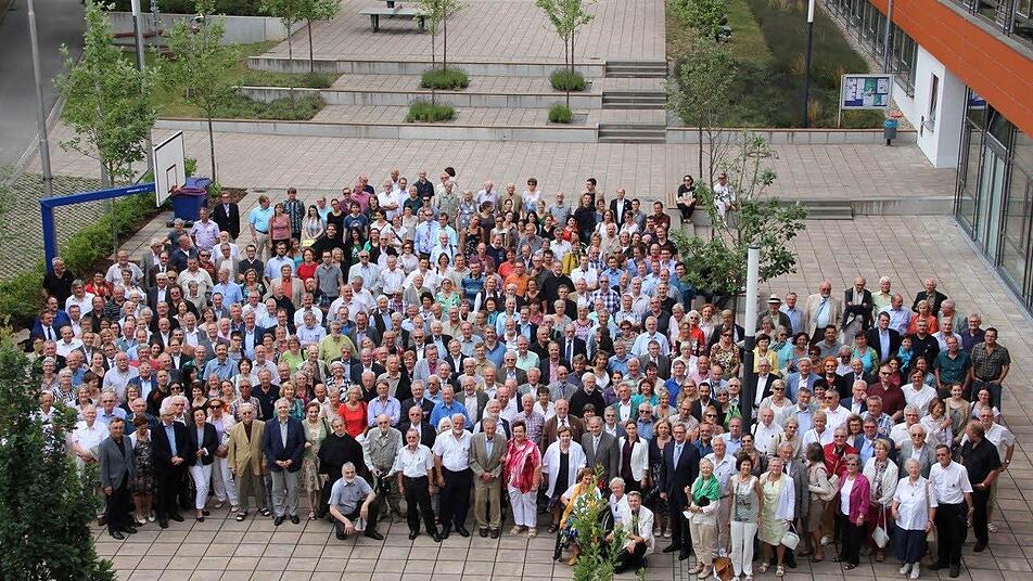 Obligatorisch war am Samstag nach dem Festakt das Gruppenfoto am Gymnasium. Das Programm geht noch bis Sonntag. Am Samstag können die Teilnehmer bei verschiedenen Führungen die Bibliothek, das Gymnasium, das Museum oder die Schule besichtigen. Es gibt Musik und am Sonntag den traditionellen Frühschoppen auf dem Marktplatz
