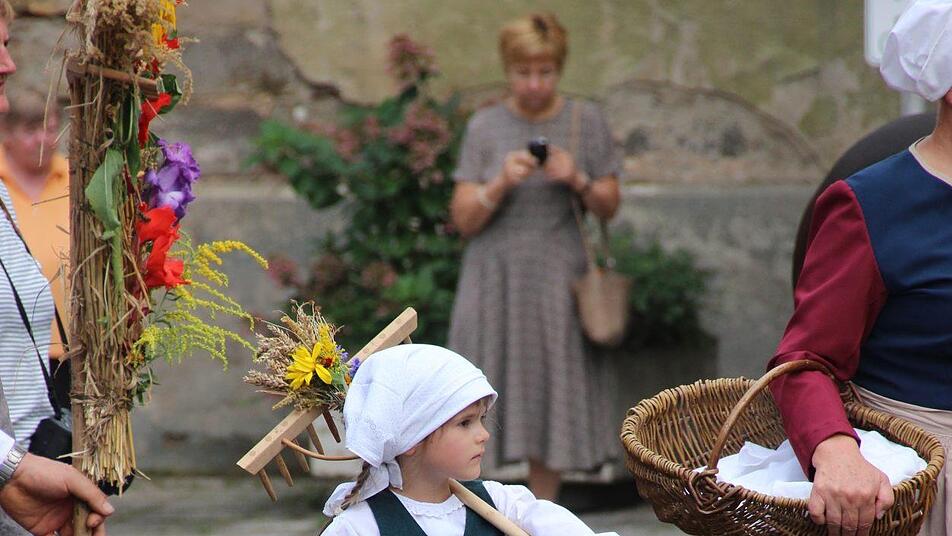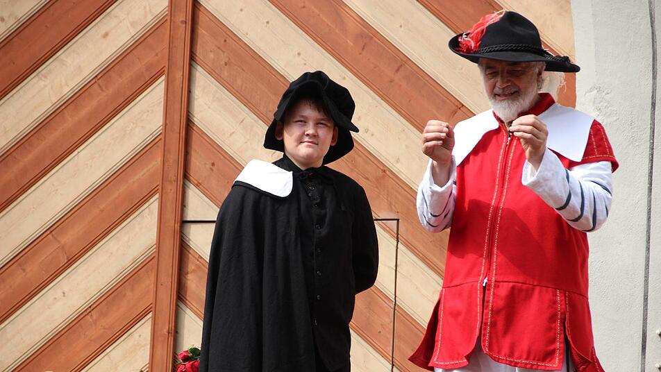 Mehr als acht Jahrzehnte trennen die kleine Johanna vom ältesten Heimatspieler. Der 84-jährige Otto Ortner stand in diesem Jahr wieder als Stadtbürger auf der Bühne. Seit er 17 ist, wirkt er beim Spiel mit.
