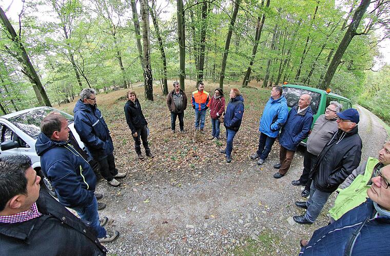 Die Marktgemeinderäte Maßbach informierten sich bei einem Waldgang, bevor sie den Jahresbetriebsplan 2018.