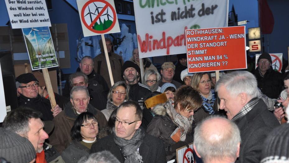 Eine in Rothhausen gegründete Bürgerinitiative (BI) zog an vielen Strängen. So verbündete man sich mit anderen Initiativen aus der Rhön. Gemeinsam gelang es Ministerpräsident Horst Seehofer bei einer Demonstration in Salz im Januar 2013 von der Notwendigkeit eines Mindestabstandes zu Wohnbebauungen zu überzeugen. BI-Sprecher Dieter Wagner war mit seinem flammenden Appell auf offene Ohren gestoßen. Dies war die Geburtsstunde der 10-H-Regel, die schließlich im Februar 2015 Gesetz wurde. Um den Projektanten "Juwi" in Rothhausen zu einem Verzicht zu bewegen, wurde auch gegen den Projektanten auf der anderen Seite der Gemarkungsgrenze, Green City, vorgegangen. Dabei ging es unter anderem auch um Nachtabschaltzeiten für die Windräder auf Maßbacher Seite. Dazu wurden Bürger am benachbarten Schalksberg auch finanziell bei einem Prozess unterstützt. Rund 20.000 Euro hatten Rothhäuser Bürger aus eigener Tasche und mit Spenden unterstützt aufgebracht, um rechtlich mit allen Mitteln gegen den Windradbau in Rothhausen vorzugehen. Auch der Erlös aus dem 2016er Dorffest war der BI zugesagt worden, musste aber dann nicht in Anspruch genommen werden, da auf Revisionen verzichtet wurde. Eineinhalb Jahre zog sich der Prozess dennoch hin, der sich am Ende für die Rothhäuser als wertvoller Zeitgewinn erweisen sollte.