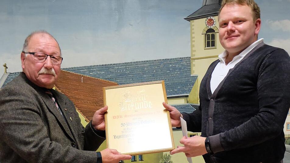Landrat Thomas Bold fand Gefallen am Vortrag der Chronik in Form von einem Interview mit den Vorständen, die alle über ihre Amtszeit was zu berichten hatten. "Wenn Zeitzeugen erzählen, hört man heraus, dass es schwierige Zeiten damals waren, einen Verein zu gründen." Der Landrat wünschte dem Jubelverein auch wieder bessere Zeiten als sie es derzeit sind und überreichte ein Geldgeschenk. "Trotz der kleinen Flaute herrscht hier eine Begeisterung, die ich gerne mitnehmen will", so Bold. Sportreferent Georg Heymann schlug in die gleiche Kerbe und bedankte sich für das Geleistete im Namen der Stadt, Reiner Werner vom BLSV Kreis Bad Kissingen, in seiner letzten Aktion in dieser Funktion, gratuliert dem Verein für das große Engagement, einen Verein über die fünf Jahrzehnte durch manchmal schwierige Zeiten zu führen. " Sport vermittelt vieles für Geist und Seele". Werner dankte für den Aufbau und die Vereinsführung und überreichte neben einem Geldpräsent auch eine Ehrenurkunde. BFV Kreisvorsitzender Reiner Lochmüller übermittelte die Grüße vom Fußballverband und nahm die Gelegenheit wahr, dem Jubelverein Danke zu sagen für die gute Zusammenarbeit. "Ihr könnt stolz sein auf die vielen freiwilligen und ehrenamtlichen Mitarbeiter im Verein", sagt Lochmüller.