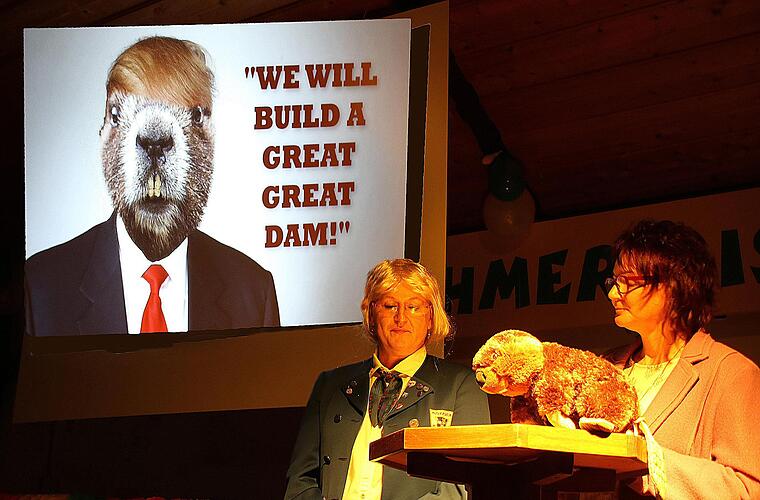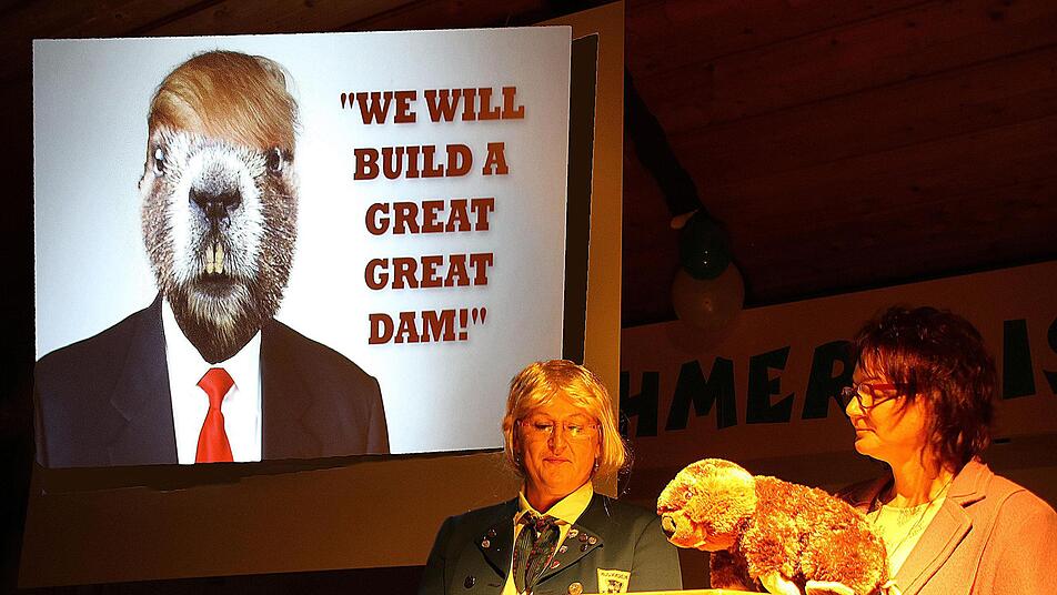 Die beste unter all den durchweg guten Nummern war "die aktuelle Kamera: der und die Biber." Anja Hesselbach als Nachrichtensprecherin präsidierte einige Münnerstädter, die sich über die Biber sehr freuen. Bürgermeister Helmut Blank (gespielt von Helmut Brust) zum Beispiel meinte "als Bürgermeister freue ich mich über jeden neuen Wähler", und dass nun seine Person und das Hallenbad hinter den Bibern zurücktreten. Man brauche nun einen Biber-Arbeitskreis und Integrations-Ausschüsse. Dort könnten die bei Kultourismus gekündigten Mitarbeiter wieder bei der Stadt arbeiten. Bei Theo Vorndran können die Tierchen zur Aktenvernichtung eingesetzt werden