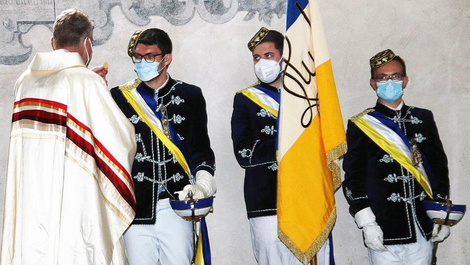 Die Kirchenbesucher wunderten sich vielleicht etwas über drei junge Herren im blauweißen Wichs (festliche Bekleidung von Mitgliedern einer Studentenverbindung) mit Säbeln und einer Fahne, die aus Würzburg zu Primiz gekommen waren. "Wir sind von der katholischen Studentenverbindung Unitas-Hetania. Christian ist bei uns Mitglied, deshalb waren wir auch schon bei der Priesterweihe in Planegg", erklärte einer der Studenten.