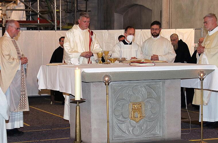 Mit dem Empfang im Schlosshof war die Primizfeier für Pater Christian noch lange nicht zu Ende. Am frühen Abend fand in der Klosterkirche ein Gottesdienst statt, im Rahmen dessen er den Primizsegen spendete und mit den Gläubigen auch ins Gespräch kam.