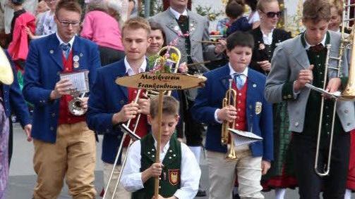 Auftritt des Ehemaligenorchesters Das Programm am Sonntag begann mit einer Kirchenparade, dem Festgottesdienst und der Totenehrung. Zum Frühschoppen spielte später im Festzelt das Ehemaligenorchester des Musikvereins Rannungen. Der Festzug selbst war natürlich der Höhepunkt des Programms am Sonntag. 45 Musikvereine und Gruppen zogen knapp eine Stunde lang an den Zuschauern vorbei zum Festplatz. Neben Musikvereinen zogen auch einige andere Gruppen und Vereine aus Rannungen im Umzug mit, um dem Jubiläumsverein ihre Referenz zu erweisen.