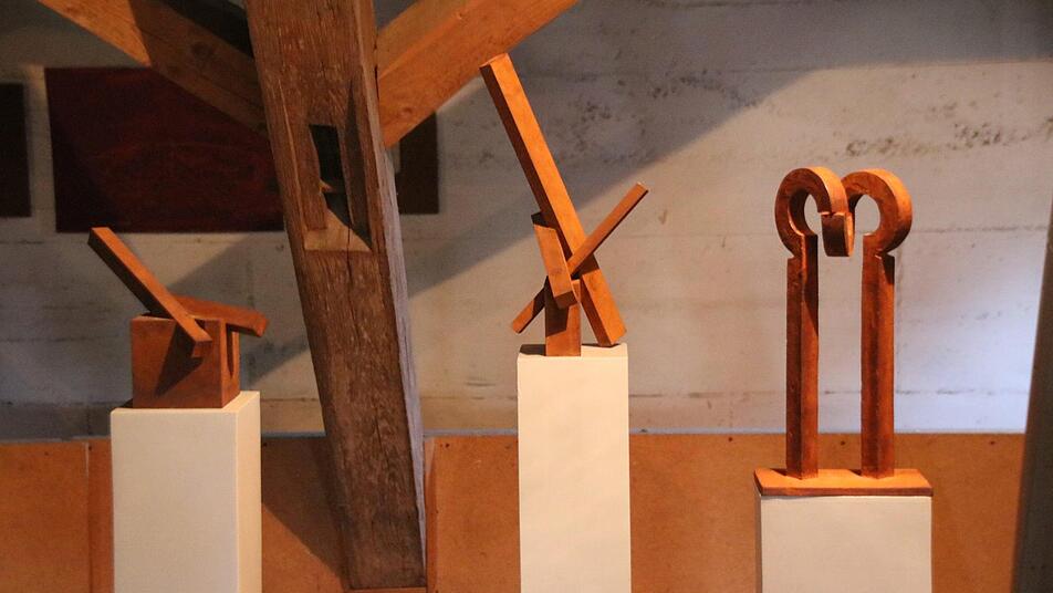 Heinz Altschäffel, Margit Aumüller, Walter Graf, Kurt Grimm, Norbert Kleinlein, Linde Unrein und Thomas Pfarr selbst stellen ihre Arbeiten in der Ausstellung aus. Jeder der Künstler kann in der alten Mühle einen eigenen Raum, man muss sagen Saal oder hallenartigen Dachboden, gestalten. Die Kreativgruppe, in der sich Bewohner aus Maria Bildhausen künstlerisch ist wie vor acht Jahren wieder dabei. Dieses Mal werden ein oder zwei Arbeiten der Kreativgruppe in jede Installation eines Künstlers integriert. "Sie sollen auf einer Stufe stehen", wünscht sich Thomas Pfarr.