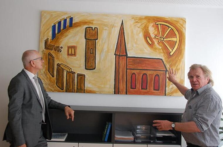 Zwei Kunstwerke des Künstlers Herbert "Jimmy" Fell bereichern künftig das Niederläurer Bürgerhaus. Bürgermeister Richard Knaier, der zu den Fans des in Niederlauer geborenen Künstlers zählt, sieht in den beiden von Fell geschaffenen Kunstwerken eine Bereicherung für das Bürgerhaus.