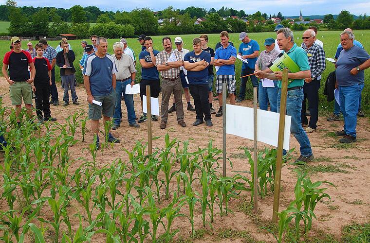Natürlich kam immer wieder die Frage auf, wie ertragreich die einzelnen Sorten sind und welche man in welchem Gebiet am besten einsetzt. Die Landwirte schauten genau hin und fragten immer wieder kritisch nach. Einem waren gelbe Spitzen an den Ären aufgefallen. "Das kommt vom Stress, den die Pflanzen in der Hitze hatten", erfuhr er.