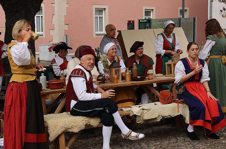 Die Landsknechte trugen ihre mittelalterlichen Uniformen und Waffen und die Marketenderinnen ihre ebenfalls mittelalterlichen Gewänder. Sie versetzten damit die Besucher schon optisch in frühere Zeiten.