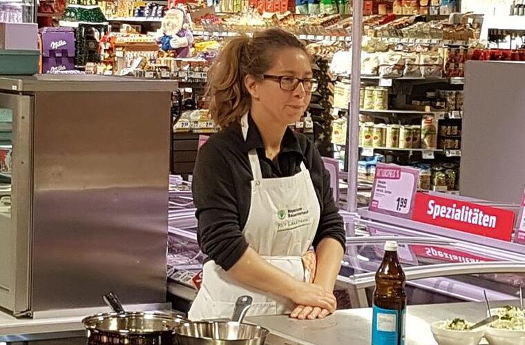 Raffinierte Gerichte aus regionalen Produkten - dafür stehen die Landfrauen des Bayerischen Bauernverbandes (BBV). Zusammen mit REWE haben die die Aktion "Wir Landfrauen on Tour" ins Leben gerufen. Nach Ladenschluss rollt in den REWE-Märkten in ganz Bayern eine mobile Küche an. Die Maßbacher REWE-Marktinhaberin Martina Fröhlich-Wehner hatte zusammen mit Kreisbäuerin Edeltraud Häusler und ihrer Vertreterin Helene Greubel zu der Veranstaltung eingeladen. Michaela von der Linden, Ernährungsfachfrau im Bildungswerk des BBV, zeigte im Maßbacher Lebensmittel-Markt, wie aus überwiegend bayerischen Produkten schmackhafte Gerichte zubereitet werden. Die Landfrauen legen viel Wert auf die saisonale Auswahl der Lebensmittel. Sie hatten natürlich die Gelegenheit alles zu probieren, was frisch zubereitet wurde. Alle Teilnehmerinnen erhielten ein kleines Kochbuch, damit die die Rezepte nachkochen können.