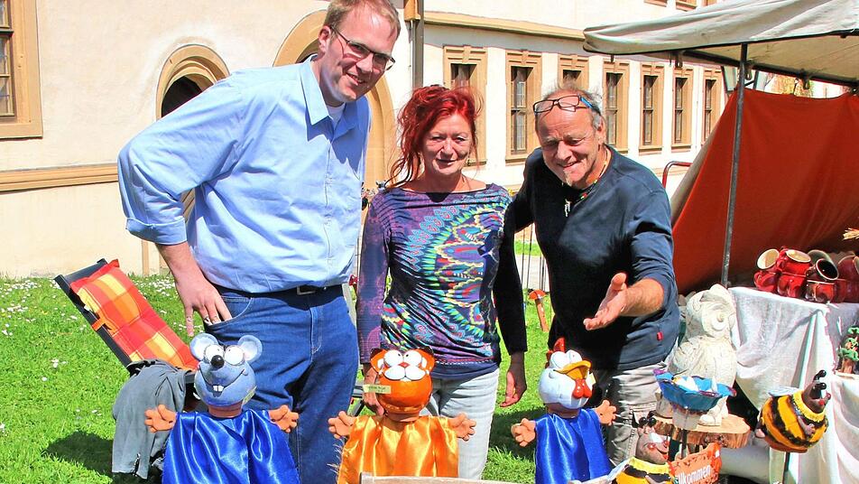 Aus der 90 Kilometer entfernten Gemeinde Haunetal in Osthessen war Wolfgang Grabenau angereist. Sein Stand mit den Garten-Steckern, Froschkönigen, Schilkröten, Drachen oder Pilzen aus Ton und Keramik war ein echter Hingucker.
