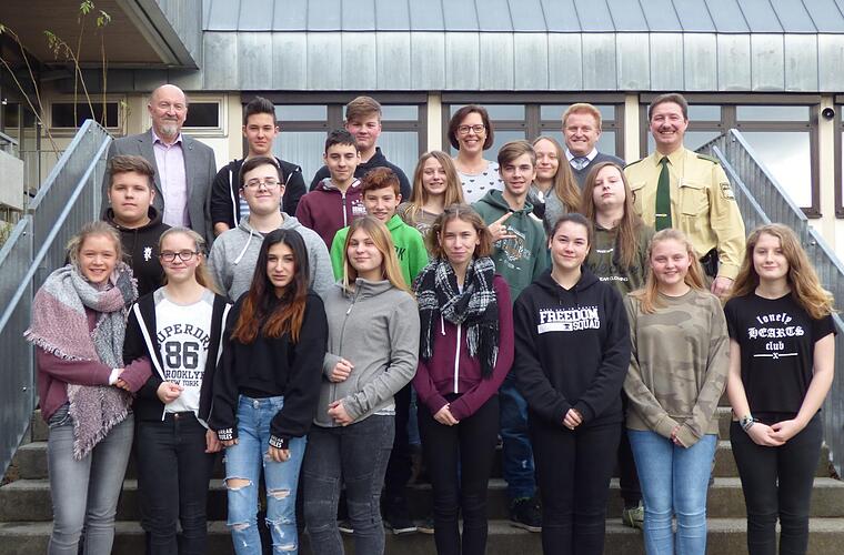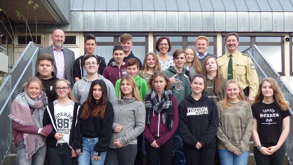 Rektor Wolfgang Wittmann und Bürgermeister Matthias Klement bedankten sich bei ihnen für ihren ehrenamtlichen Einsatz. Dankesworte gab es aber auch für die Mädchen und Jungen der achten Jahrgangsstufe, die sich nun seit fast einem Jahr als Schulweghelfer engagieren sowie für die beiden Verkehrserzieher Matthias Kleren und Stefan Löser und Lotsenbetreuerin Annabell Fleischmann.