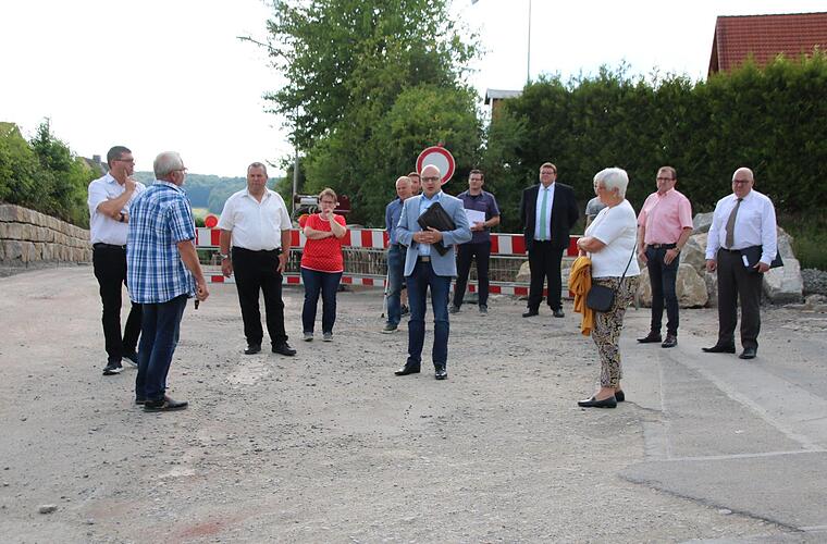 Vor Ort erläuterte Bürgermeister Michael Kastl den Stand der Arbeiten auf der Baustelle. Zunächst wird der Bereich zwischen Ortseingang und Ortsmitte (KG 1) hergerichtet, anschließend folgt der Bereich Ortsmitte bis Ortsausgang in Richtung Burglauer. Der Landkreis plant auch, so erinnerte der Bürgermeister, die KG 1 zwischen Münnerstadt und Reichenbach herzurichten, wobei gleichzeitig ein neuer Radweg gebaut werden soll. Dieser wird dann vor dem Friedhof in Reichenbach enden. Entlang des Friedhofs war bisher noch kein Gehweg vorgesehen, der sollte erst unmittelbar danach einseitig mit einer Breite von 1,5 Meter beginnen.