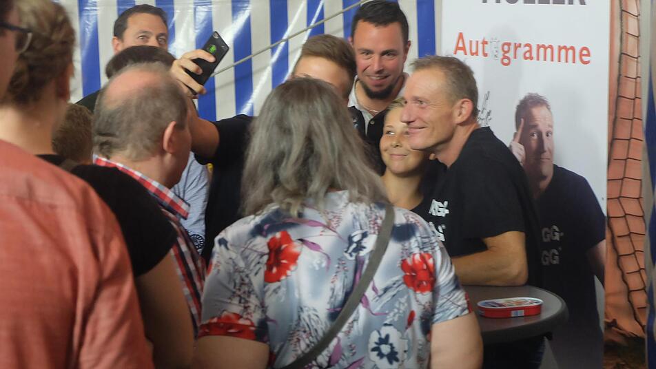 Scharfsinnig nahm Müller Aktuelles aus Politik oder Gesellschaft aufs Korn. Dabei war der Humor, den der fränkische Kabarettist wie gewohnt und lebensnah an den Tag legte, wieder nach dem Geschmack der Zuhörer. Für Müller gab es keine Tabus, sein Programm war, packend und für das bis auf den letzten Platz besetzte Festzelt mitreißend bei seiner Zeitreise durch den täglichen Wahnsinn.