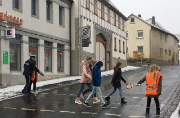 Zuvor erhielt jeder Schüler an seiner Lotsenstelle eine Einweisung durch Verkehrserzieher Kleren. Dazu fand eine Busfahrt durch die Orte Rannungen, Poppenlauer, Thundorf, Volkershausen und Maßbach statt.