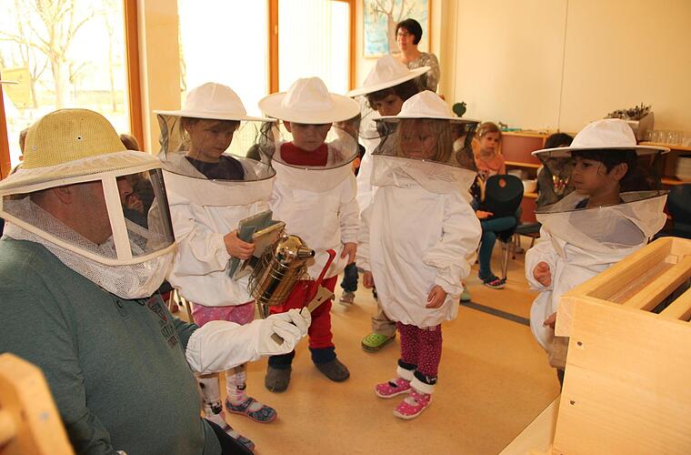 Froh zeigte sich Hans Petsch, dass dank dieser Kooperation das alte Bienenhaus im Novizengarten reaktiviert werden konnte. Die Kindergartenkinder schauen bei ihren Spaziergängen regelmäßig, wie es ihren Bienen geht. Wichtig ist den Verantwortlichen beider Vereine, dass die Kinder schon früh lernen, wie sie sich dem nützlichen Insekt gegenüber verhalten sollen und können.