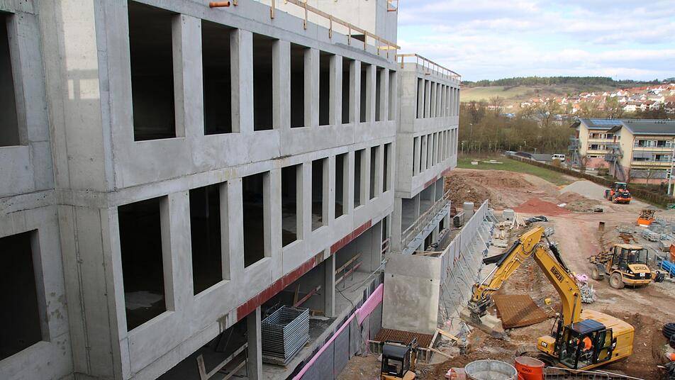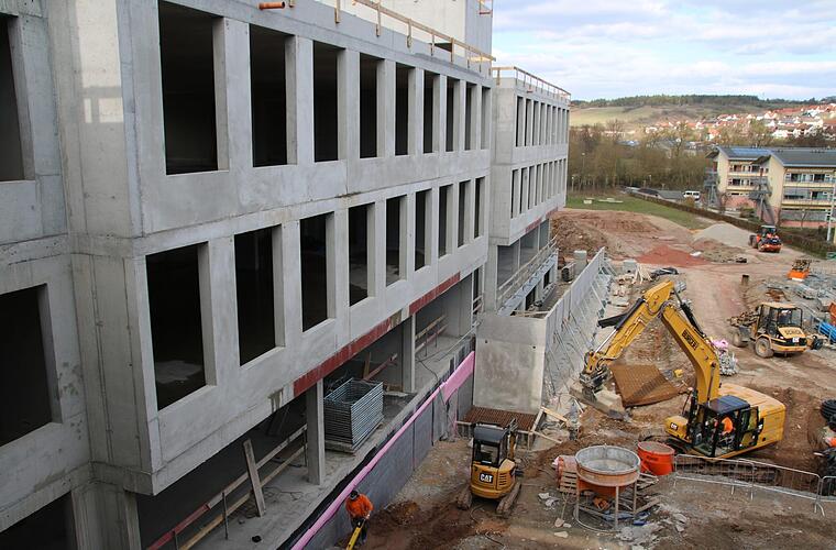 Die Baukräne sind verschwunden. "Der Rohbau ist zu 98 Prozent fertiggestellt, jetzt kommt nur noch die Stützmauer ", sagt Harald Schäfer, Projektleiter für den Landkreis Bad Kissingen. Die Mauer schützt das Untergeschoss. In den ersten beiden Aprilwochen wird die Versorgungstrasse für Trinkwasser, Strom und Gas gebaut.