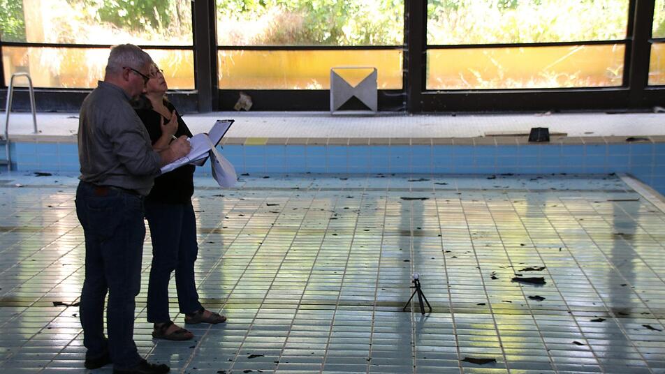 "Wir nehmen den Bestand auf und machen Fotos, um den Sanierungsbedarf zu ermitteln", sagt Reiner Wirtz. Während er und seine Kollegin sich hauptsächlich um das Gebäude kümmern, ist Dr. Nicole Riedle für die Haustechnik zuständig. Die beiden Büros haben schon öfter zusammengearbeitet. Anhand der gewonnen Daten sollen anschließend die Kosten für eine Sanierung aufgezeigt werden. Bis November haben die Experten dafür Zeit. "Vielleicht wird es auch etwas früher", sagt Reiner Wirtz. Auf alle Fälle sollen die Ergebnisse im Stadtrat vorgestellt werden. Dann hat das Gremium den gewünschten Kostenvergleich zwischen der Sanierung auf der einen und dem Abriss mit Wiederherstellung des Geländes auf der anderen Seite.