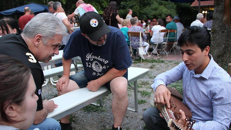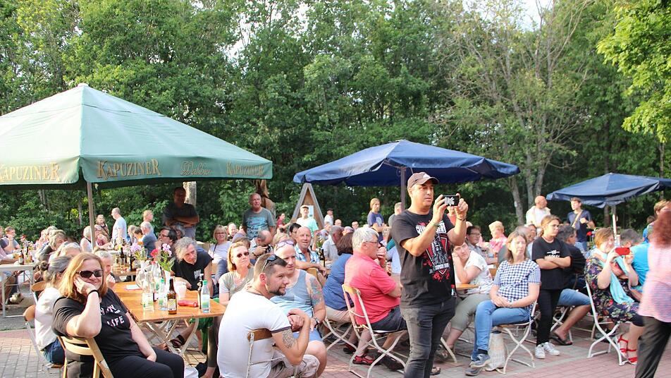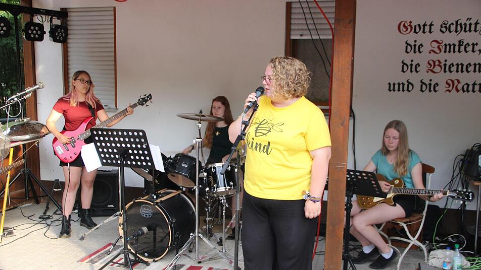 Völlig überrascht war Bärbel Fürst über die große Besucherzahl, die sich an diesem lauen Sommerabend im Bienenhaus versammelt hatte. "Wir wussten ja gar nicht, wer kommt", stellte Fürst fest. Ähnlich erging es dem Imkerverein Münnerstadt und Umgebung. "Wir haben mit dieser Größe nicht gerechnet", erklärte Vorsitzender Dieter Schölzke zwischen Bratwurstverkauf und neuer Getränke-Lieferung. "Wir sind flexibel und schaffen das", ergänzte er sofort gut gelaunt. Kurzfristig hatten die Imker noch alle Brötchenreserven in Münnerstadt aufgekauft, Getränke wurden nachgeordert. Der Sonntagskuchen war schon am Samstag gegessen. "So soll es sein", war die zufriedene Feststellung von Dieter Schölzke. Vertreten waren alle Altersklassen beim Fest. Senior im Kreis der Open Air-Besucher war aber Anton Mahlmeister aus Reichenbach. Der 92-jährige verfolgte das Geschehen etwas abseits vom Gedränge und hatte ebenfalls seine Unterhaltung, auch wenn er fand, dass die Musik gleich zu Beginn etwas leise zu hören war. Da war er nicht der einzige, der das feststellte. Denn die erste Formation trat ohne Verstärker auf. Da hatten die hinteren Reihen etwas das Nachsehen. Aber die Lautstärke steigerte sich im Laufe des Abends noch deutlich.