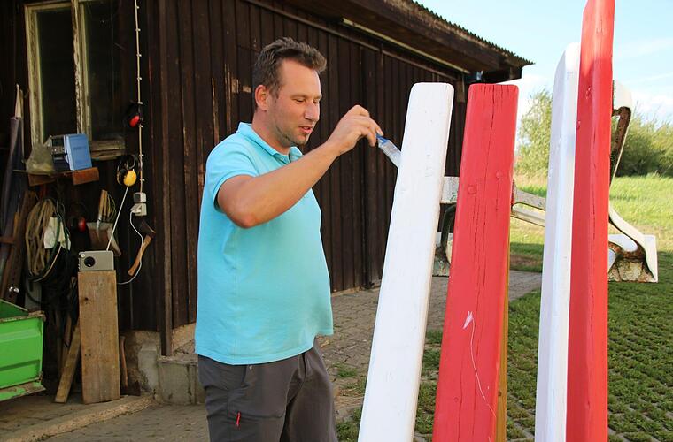 Das Ganze soll schnell und unbürokratisch über die Bühne gehen. Zwei alte Bänke aus dem Gemeindehaus waren schnell besorgt, die hat Fabian Nöth nun frisch gestrichen. Eigentlich sollten es die Farben des Regenbogens werden, aber dafür hat das Angebot im heimischen Farbenregal nicht ausgereicht. Rot und Weiß hatte er noch genügend, und weil das die fränkischen Farben sind, fiel die Entscheidung leicht. Später werden die Bänke noch mit einem Schild versehen.