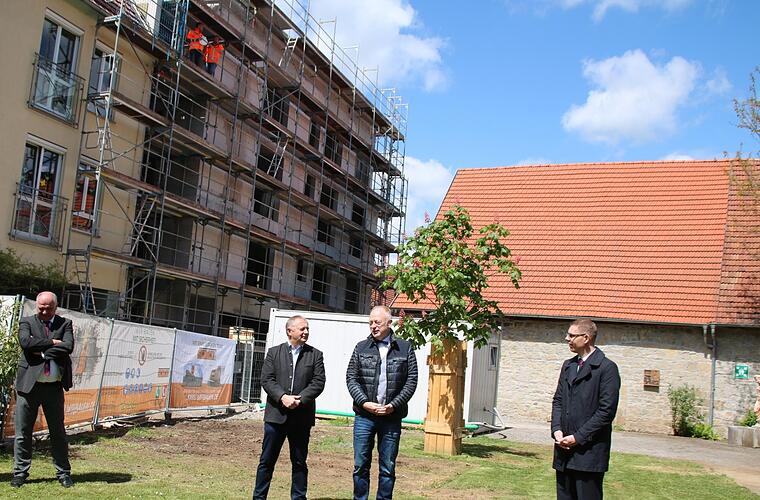 Mit dem Richtfest am Erweiterungsbau des Juliusspitals hat die Carl-von-Heß'sche Sozialstiftung eine wichtige Etappe auf dem Weg zur Umsetzung des neuen Heimbaugesetzes abgeschlossen. Rund 3,5 Millionen Euro investiert die kreiseigene Stiftung in diesen Neubau. Erst vor zehn Monaten war gleich gegenüber der Neubau des Betreuten Wohnens Haus St. Michael übergeben worden.