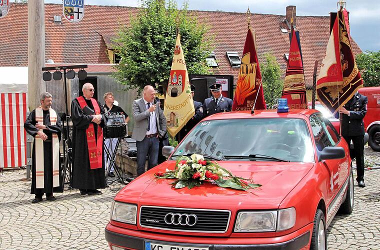 Bürgermeister Helmut Blank (CSU) lobte das bürgerschaftliche Engagement der Feuerwehr, die auf Kosten des Vereins den Kommandowagen ausgebaut hat.