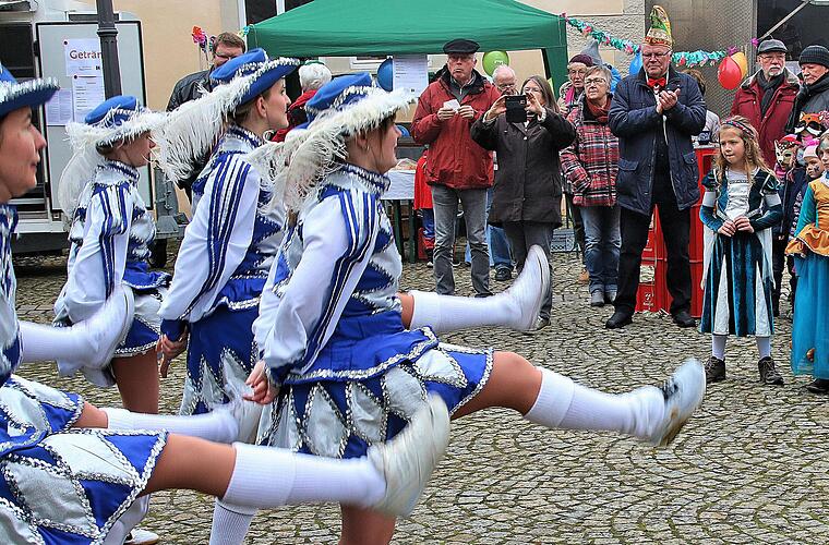Auf dem Anger selbst sorgte auch dieses Jahr wieder Elferrat Thomas Klemm als DJ für Stimmung. Aus den beiden großen Lautsprechern schallten "Schatzi, schenk mir ein Foto" oder die "Polonaise aus Blankenese." Hier hatte dann die Elferrats-Garde ihren großen Auftritt und gab eine Kostprobe