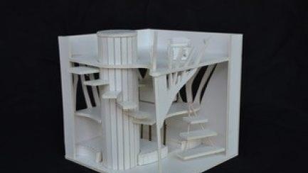 Nicht einfach war zudem, Ideen zu finden, die sich im Modell umsetzen lassen. Auch diese Erfahrung musste die Siegergruppe der neunten Klasse machen. Das erste Modell habe einfach nicht funktioniert, erzählen Luisa Spieß, Ida Hauck und Clara Büchs. Also hat man die Idee verworfen und ganz neu begonnen. Beim zweiten hat es dann so gut geklappt, dass auch die Jury in München davon überzeugt war. Die Schülerinnen-Gruppe hatte einen Kubus gestaltet, in dessen Zentrum eine als Bücherregal nutzbare Treppe den Raum in Lern- und Ruhebereiche unterteilt. "Treppenwerk" heißt die Arbeit. Zwölf Unterrichtsstunden standen für die Planung und den Modellbau zur Verfügung. Am Ende waren die Zeit dann so knapp und der Spaß so groß, dass das junge Planerteam freiwillig nach Unterrichtsschluss am Feinschliff gearbeitet hat. Das hat sich gelohnt.