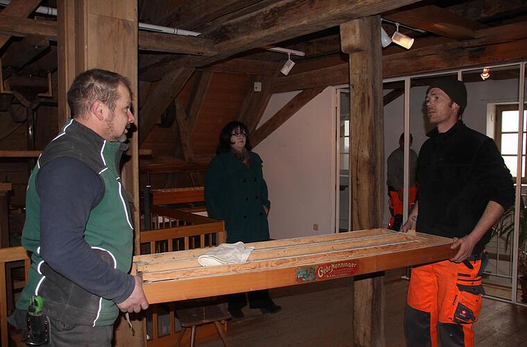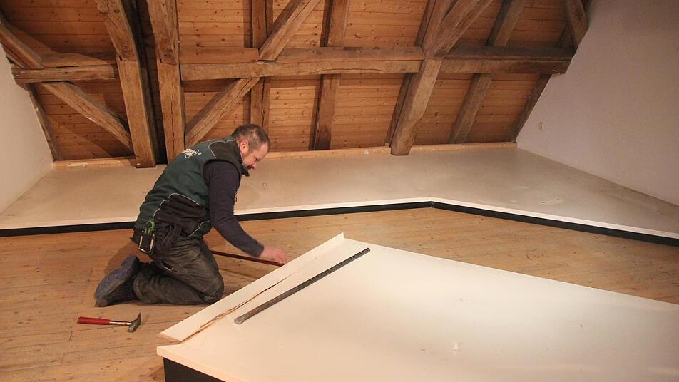 Im zweiten Obergeschoss soll in Zukunft neben der Ausstellung auch das historische Dachgebälk besser zur Geltung kommen. Dazu ist es nötig, den Dachboden weitgehend umzugestalten. Nur Großobjekte wie der Backofen, bleiben stehen. Entfernt werden die meisten der vorhandenen Podeste. Danach wird der alte Holzfußboden abgeschliffen, ehe die Objekte wieder zurückkommen und so platziert werden, dass auch die Architektur des Dachgeschosses besser wirken kann. Sie hätte es, so die Meinung der Kunsthistorikerin, verdient.