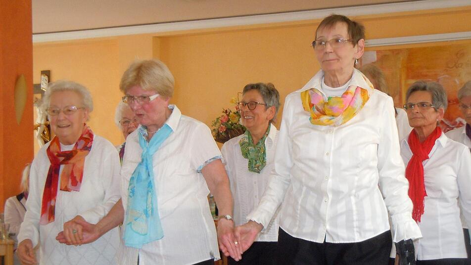 Gerne ließen sich die Senioren zum Mitsingen bekannter Volkslieder und Schlager animieren. P. Jordan Fenzl stimmte auf den Frühlingsmonat Mai mit passenden Gedichten ein. Ein neuer Hausbewohner sang selbst das Kreuzberglied ins Mikrofon. Die Tanzgruppe unter Leitung von Isolde Wohlfromm zeigte drei Formationstänze und erhielt dafür reichlich Applaus.