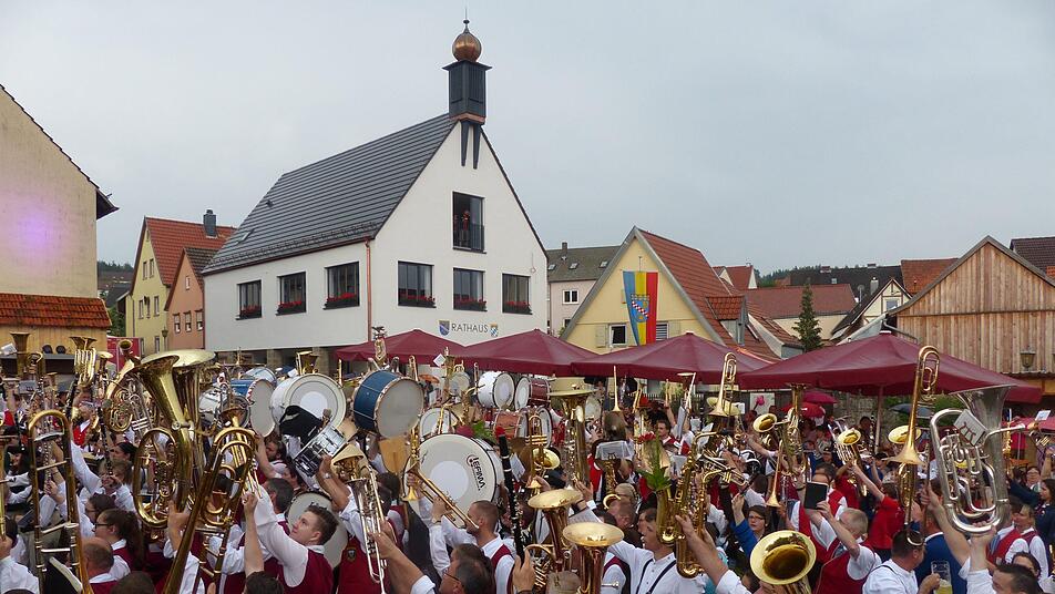 Mit einem Sternmarsch zum Marktplatz und einem fulminantem Gemeinschaftskonzert von 13 Musikkapellen wurde das Fest in Strahlungen gefeiert.