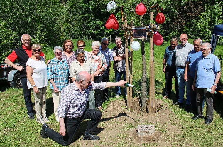 Sie wollten ein Denkmal dafür setzen, dass sie letztes Jahr ihren 70. Geburtstag feiern konnten. Und sie haben auch keinen Apfelbaum gepflanzt, sondern eine schon zehn Jahre alte Linde. Am Vatertag bauten Angehörige des Jahrgangs nun unweit "ihres" Baumes ein großes Party-Zelt auf, um sozusagen die Einweihung des Baumes und des Gedenksteines davor zu feiern.