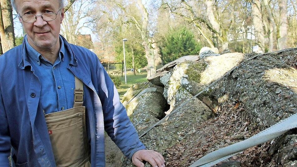 Die hohle Linde des Hindenburgparks wird in diesem Frühjahr zwar keine grünen Blätter mehr treiben, doch sie hat eine Zukunft. Der mächtige Stamm der mindestens 300 Jahre alten Linde wird ein Kunstobjekt. Der Langenleitener Bildhauer Herbert Holzheimer hat den Stamm am Mittwoch in sein Atelier bringen lassen. Er bezeichnet es als Glücksfall, dass er den Stamm der im Spätsommer letzten Jahres umgestürzten Linde bearbeiten kann.