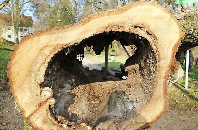 In freier Natur wäre das Relikt der hohlen Linde nur noch begrenzte Zeit haltbar gewesen, glaubt Holzheimer. Fünf Jahre, vielleicht zehn, meint er. Erste Idee in Münnerstadt war ja gewesen, die hohle Linde als umgestürztes Naturdenkmal im Hindenburgpark selbst zu erhalten.