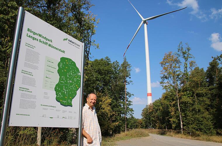 Norbert Schmäling, der den Bürgerwindpark Langes Schiff initiiert hat, ist rundherum zufrieden. Das betrifft den Partner Naturstrom ebenso, wie die Windräder selbst. Für ihn ist es an der Zeit, mit einem Vorurteil aufzuräumen. Immer wieder bekomme er zu hören, dass die Windräder abgeschaltet werden, wenn zu viel Strom produziert wird. So etwas möge es ja im Norden geben, aber: "Ich kann als Geschäftsführer definitiv sagen, dass in den drei Jahren die Windräder nicht eine Sekunde vom Netzbetreiber wegen Netzengpässen abgeschaltet wurden", betont er. Und die angegebene Menge von 24 Millionen Kilowattstunden pro Jahr werden auch heuer erreicht. Damit lassen sich rund 10 000 Haushalte versorgen, viel mehr als Münnerstadt hat. So könne man Münnerstadt als energieautark bezeichnen, einschließlich sämtlicher Industriebetriebe.