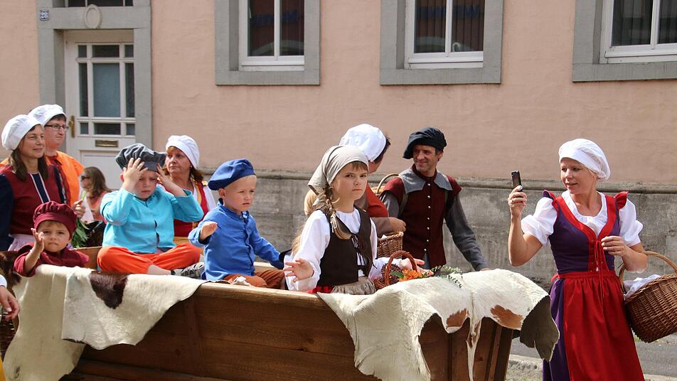 Die Sonne brannte am Sonntag nicht zu heiß vom Himmel, und dazu sorgte gelegentlich eine Brise für Kühlung - so etwas nennt man Bilderbuchwetter für das historische Heimatspiel, den Schutzengelmarkt und den Flohmarkt. Nicht zu vergessen das Rahmenprogramm mit Bewirtung im Schloss, dem verkaufsoffenen Sonntag, der Stadtführung "Münnerstadt und sein Heimatspiel" und dem Stadtrundgang mit dem Nachtwächter.