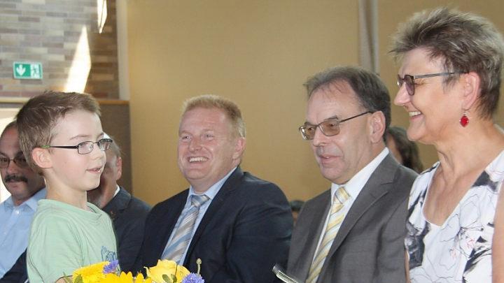 Angelika Kothmann-Loos bedankte sich nicht nur bei ihrer Familie für die Unterstützung, die sie in ihrer nicht immer einfachen Dienstzeit erfahren durfte, sondern auch beim Kollegium, den politischen und geistlichen Vertretern und bei allen, die Anteil am Zustandekommen des guten Schulklimas hatten. Ihrer Nachfolgerin Simone Heinz wünschte sie alles Gute. Mit einem Lied der Bläserklasse endete die Feierstunde.