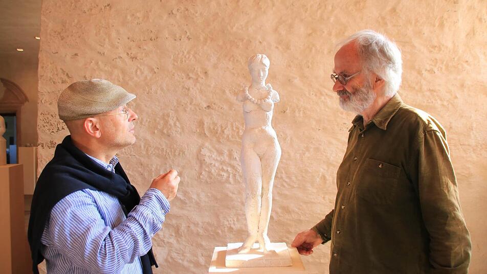 Maria Bildhausen gewinnen möchte. Zwei Jahre später und nach zahlreichen Fahrten in den Steigerwald hatte Thomas Pfarr endlich die langersehnte Zusage des renommierten, aber eher zurück gezogenen Künstlers erhalten. Am Samstag, 24. September, ist die öffentliche Vernissage im Abteigebäude von Maria Bildhausen.