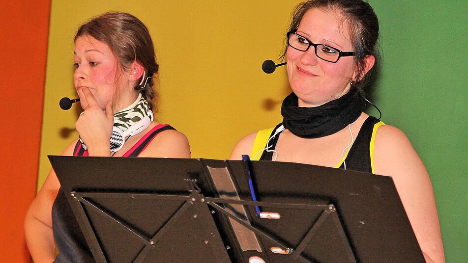 Caro Schwarz und Franziska Eckert waren auf ihrer "Jogging-Tour" durch Münnerstadt eher "versehentlich" in die Sitzung geraten. Die beiden jungen Damen, 25 und 26 Jahre alt, von Beruf Büro-Kauffrau und Innenarchitektin, zählten mit ihrem Auftritt eindeutig zu den Glanzlichtern des Abends. "In unserem Mürscht, dem schönen Ort, kommt nach und nach so ziemlich alles fort. Des Augustiner-Kloster, wo sich einst der Orden neu erfunden, ist fast sang- und klanglos dahin geschwunden", klagten sie. Oder "Kabarettveranstaltungen gibt's in Münnerstadt viele, des ist vergleichbar mit dem alten Rom: Brot und Spiele, Kulturzauber und Kabarett, damit die Leut net merke, wie's mit Mürscht abwärts geht".