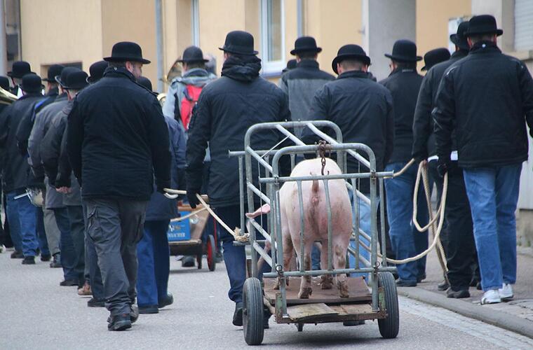 Auf eine lieb gewordene Tradition müssen die Cocks seit letztem Jahr verzichten: Bis 2017 wurde das Schwein am Dienstag nach Kirchweih in einem Wagen durch das Dorf gezogen und anschließend per Bolzenschuss von "aller Erdenschwere" erlöst. Dazu sangen die Cockser die schwermütigen Zeilen "Morgenrot, Morgenrot, Leuchtest mir zum frühen Tod." 2017 bekamen Tierschützer Wind von der Sache, es hagelte Proteste, was die Cockser bis heute nicht verstehen. Schließlich wurde die Schlachtung verboten, weshalb die Cocks im letzten Jahr einen leeren Wagen mit Trauerflor durch das Dorf zogen. Das Ende der Cocks? Keineswegs. Zur nächsten Kirchweih werden zwei Schweinehälften bestellt.